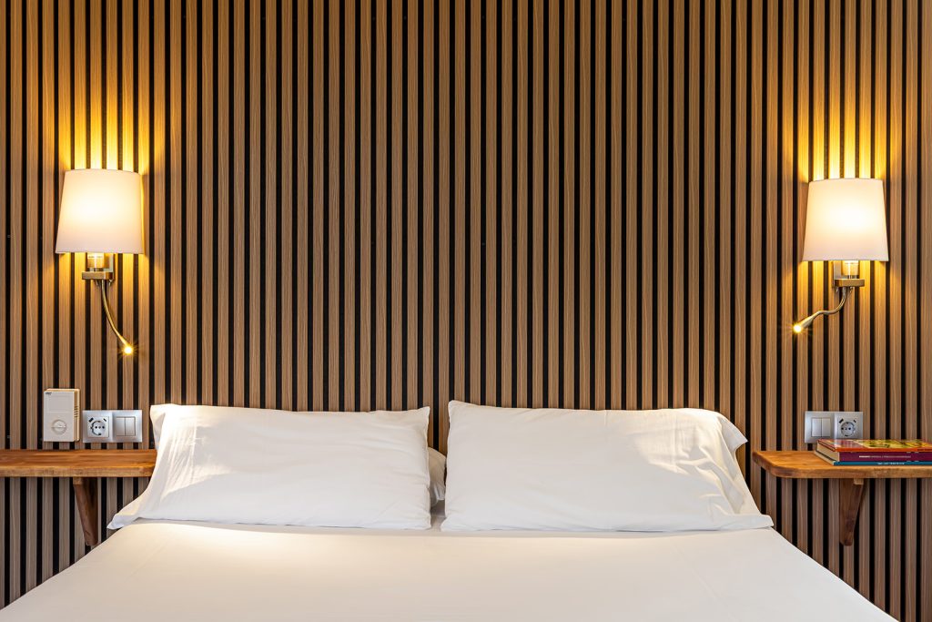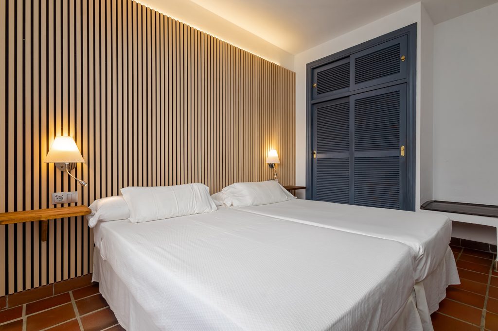 Amplia habitación de 25 m2 con zona de estar y gran cuarto de baño. Adaptable como habitación cuádruple. Poseen dos balcones o balcón y ventana.