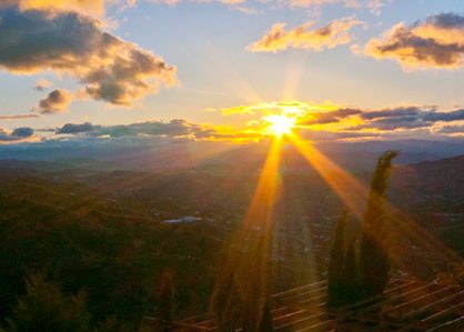 No resulta difícil imaginarse dándose un baño en ella….disfrutando de las vistas que gobiernan al valle, relájate en las hamacas o duerme una siesta en nuestra cama balinesa chill out En nuestra terraza podrás disfrutar de un entorno natural y del silencio…. Amplio jardín sembrado de especies autóctonas, que cuando llega la primavera entra en su máximo esplendor. En él hemos celebrado bodas, aniversarios y hasta grupos de meditación se despliegan en paz fundidos con la naturaleza… una pérgola exterior cubierta, cuando el calor se hace intenso es un buen aliado para mantenerte a temperatura ideal disfrutando de una bebida refrescante… también y gracias a las salidas directas al jardín desde nuestro restaurante, puedes disfrutar de tu desayuno, la comida o un almuerzo al exterior con nuestras mejores vistas La noche es también el momento perfecto para disfrutar de nuestros exteriores, su iluminación baja impide la contaminación lumínica y permite la perfecta visualización del cielo estrellado y de las luces de los distintos pueblos del valle que se dominan desde nuestra elevada atalaya.